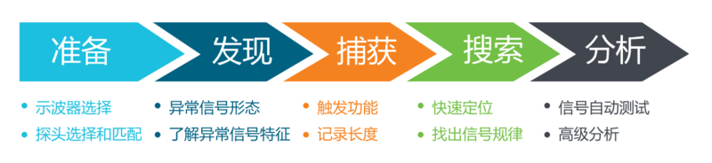 发表时间:2020-11-11 14:16网址:http://www.smart-ele.com 示波器是工程师必备工具,用来帮助工程师快速发现问题和解决问题。近几年,伴随测试信号频率越来越快,需要调试的信号类型越来越多,嵌入式系统结构越来越复杂的趋势,作为工程师的调试伙伴,示波器的功能与效率需求也在不断的提升。 信号调试工作的五个阶段: