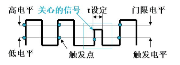 无线余晖 第三阶段:捕获异常 不同的测试场景都有不同特征的信号需要捕获,特殊异常信号捕获需求变得越来越多,这就需要工程师有足够的经验设定不同的触发方法,捕获自己想要的信号。 示波器的高级触发功能,可以帮助工程师实现设定不同触发方式捕获异常信号。泰克示波器不断增强触发功能以满足信号捕获需求。 如新一代示波器 MSO5 系列提供如边沿,脉宽,欠幅,逻辑,窗口等 24 种 触发方式(包含 14 个是数字通道及总线触发)满足日常信号捕获的需求。 触发得到异常信号,如何捕获?捕获能力又是对示波器的一大考验。示波器的记录长度及分段存储功能是考量示波器捕获能力的重要因素。泰克新一代示波器 记录长度基本在几十M 点,可实现对信号高采样长时间的连续捕获。 推荐两个捕获信号非常有用的功能: 欠幅触发 幅值异常,惯用的边沿触发功能能解决一些问题,但是对于某些隐藏在连续的几个脉冲里的幅值异常信号 就非常困难(因为正常信号符合边沿触发条件)。“欠幅触发”,它是针对幅值异常的信号设定的,可以设 定高低两条电平线,只要幅值在两条线之间就能触发, 大大准确定位了需要的波形,当然这个触发条件还支持对脉冲设定符合的条件,可以更灵活的捕获特定波形。 这个功能很大程度应用在逻辑信号调试,因为逻辑信号高低电平靠阈值来判定,这样幅值异常很容易引起高低电平判定及解码错误,是真正混合信号调试的利器。